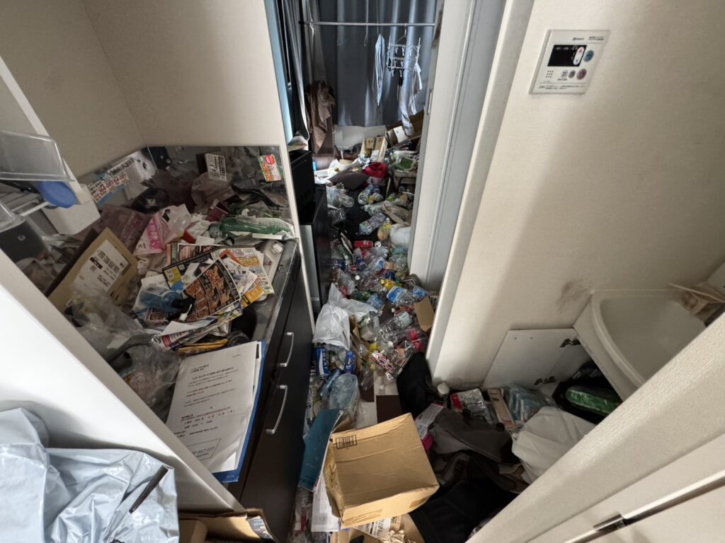 現地を確認すると、ワンルームの室内には生活ゴミが中心に残っていました。