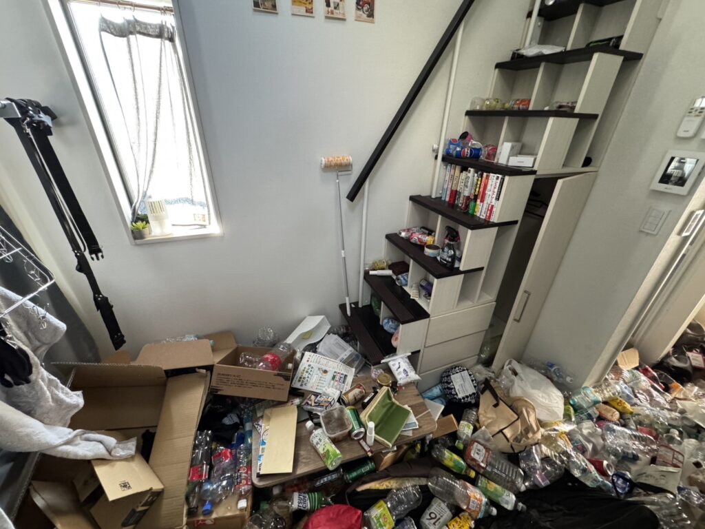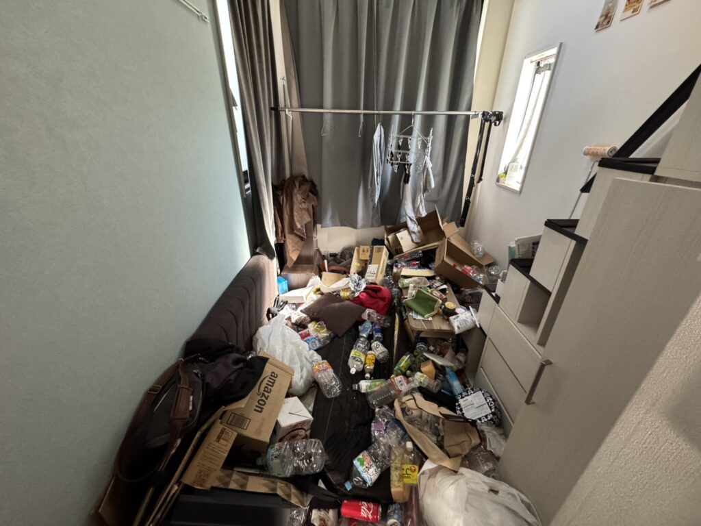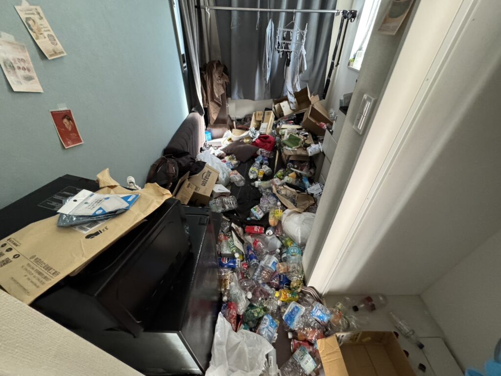 また、ゴミの分別やゴミ出しの手続きが面倒に感じてしまい、部屋の中にはペットボトルやコンビニ弁当の容器などが多く残っている状態でした。